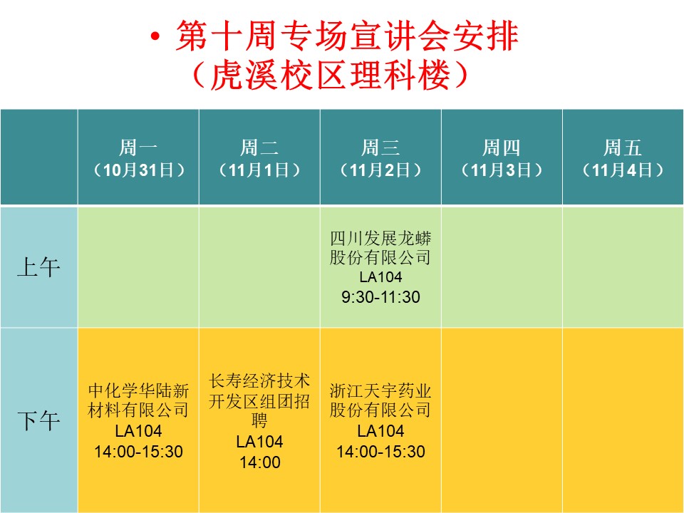 虎溪校区理科楼第十周专场招聘会安排