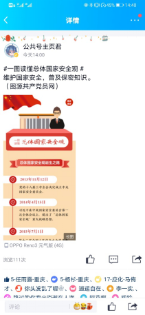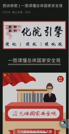 学院充分利用新媒体手段,依托学院宣传大屏幕、微信公众号、QQ、学生年级群等媒介,播放保密宣传视频、宣传相关法律法规知识,营造了浓厚的学习氛围。