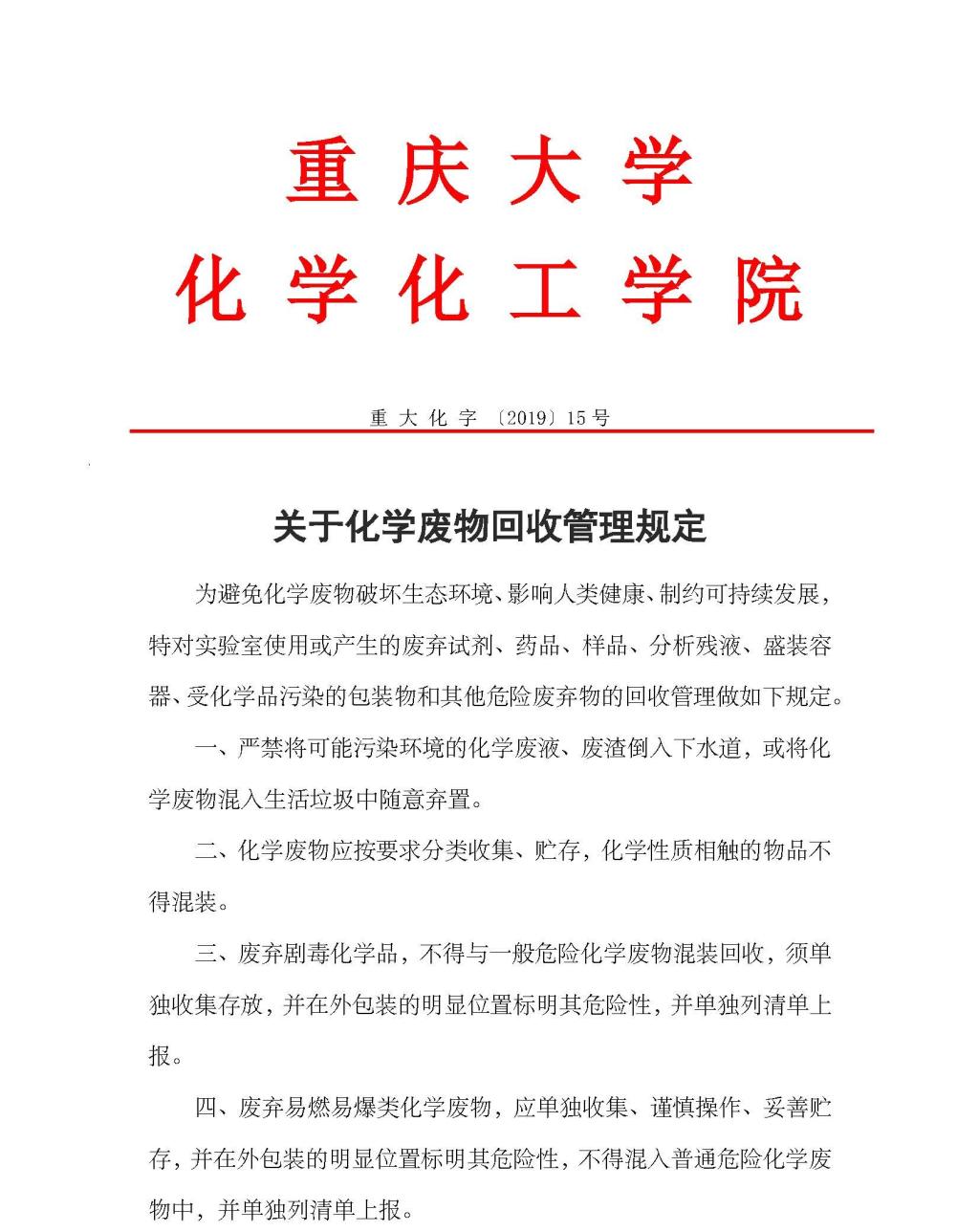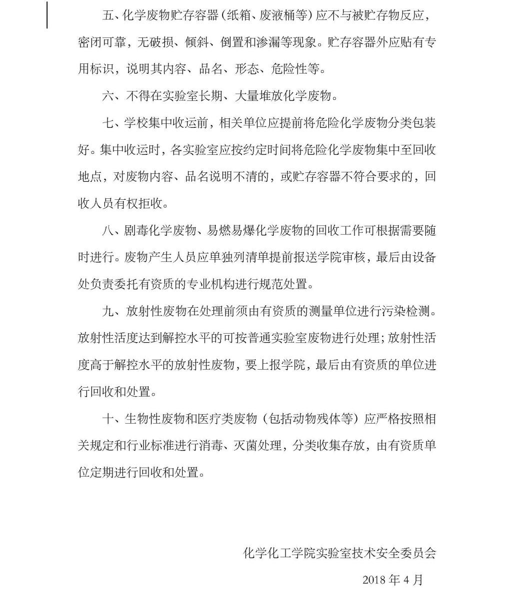 关于化学废物回收管理规定