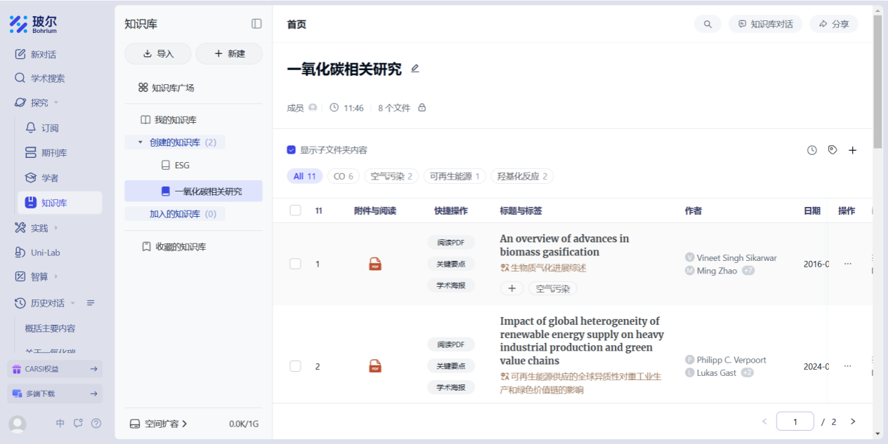 玻尔内置知识库管理和文献在线阅读功能,你可以对文献进行结构化管理、在线 AI 精读、笔记标注等。你还可以组建团队共享的知识库,并就科研资产展开协作共享,逐步建立起系统的科研资料库,为毕业论文与长期课题积累数据基础。