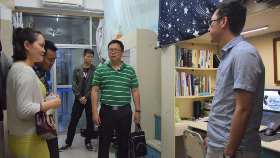 领导前往虎溪校区兰园七栋和梅园六栋走访2014级本科毕业生宿舍,学院党委书记刘仁龙,党委副书记胡小华,副院长李泽全、董立春、胡宝山,各年级辅导员等其他老师一同参与。