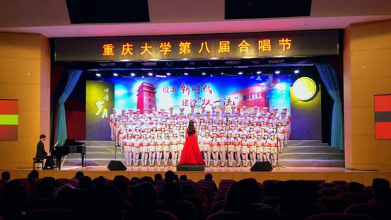 比赛正式开始,在男、女领读员饱含情感的朗诵下,《七律长征》拉开帷幕。全体师生目光如炬,精神饱满,坚定激昂的歌声响彻会场,伴随着气势磅礴的钢琴伴奏,红军长征中的艰难险阻在歌声里娓娓道来。“飞夺泸定桥,巧渡金沙江”,师生们铿锵有力的歌声是革命终将胜利的信念,气势恢宏的歌曲最终赢得全场观众热烈的掌声。