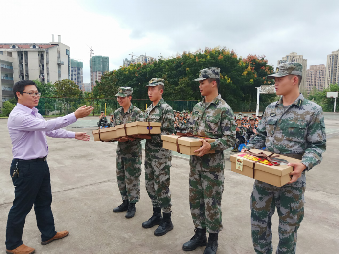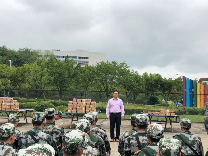 紧接着,刘书记向2018级新生军训教官表示了感谢,并给全体教官送上了慰问品。