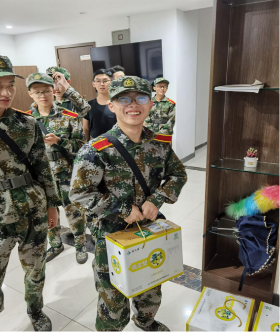 将会组织新生开学典礼,届时2020级全体本科生和研究生新生都会参与,还会邀请优秀毕业校友讲述他们的“重大故事”,以帮助新生调整状态以便及时融入大学生活。同时,勉励新生通过军训锤炼自己的品质,怀揣梦想,不忘初心,继续奋斗,与学院一起共同奔赴美好的未来。为表达学院对军训同学的关心,学院为每位同学准备了慰问品—黄金梨。