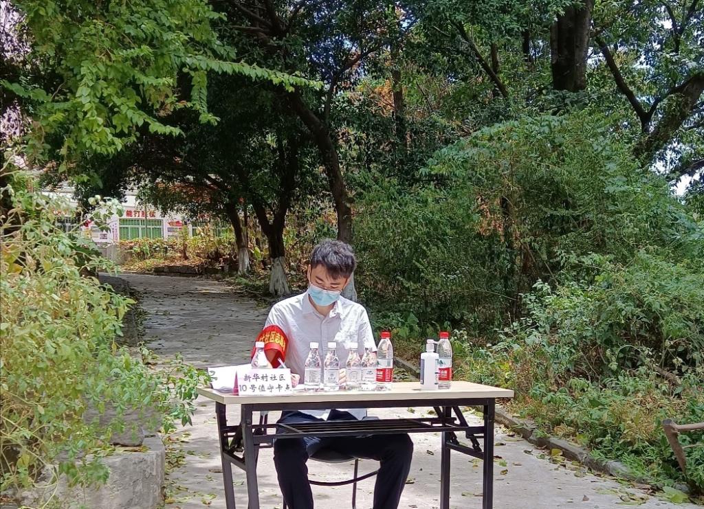 “总有我能做的”,学院上学期末刚刚引进的青年教师张骞老师在收到志愿者招募的信息后加入了志愿者队伍,冒着40几度的高温,顶着烈日,负责对新华村社区的值守,出入登记管理,物资发放,出入政策解释,服务居民之类的工作。半天下来,皮肤已经晒得发红,衣服也已经湿透。