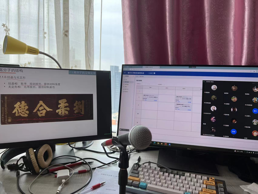 李存璞老师讲授《高分子化学》时利用腾讯会议直播结合QQ群与大家进行互动。为了方便同学们查漏补缺,李老师还在Bilibili预先上传了录制好的《高分子化学》全部教学实录,供同学们随时观看。