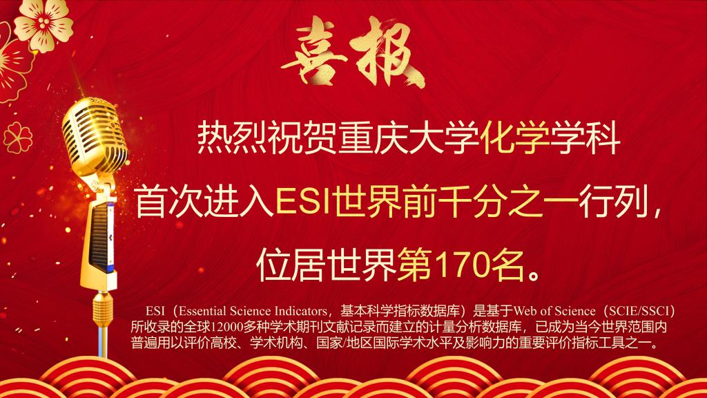 热烈祝贺足球博彩 化学学科首次进入ESI世界前千分之一行列,位居世界第170名。