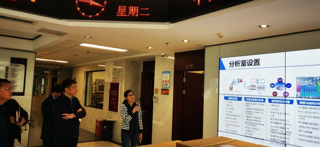 冯波副校长一行参观了学校分析测试中心,副主任唐金晶向来校领导们介绍了分析测试中心的发展历程、软件配置、建设成效,随后带领大家参观了分析测试中心的低温物相分析室、表面与结构分析室、光谱分析室,质谱与色谱分析室、微纳结构分析室等,对仪器设备进行了详细介绍。