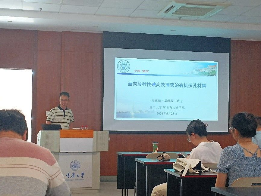 虎溪校区理科楼LA107室,厦门大学谢亚强副教授应邀开展了主题为“面向放射性碘高效捕获的有机多孔材料”的学术讲座。本次讲座由足球博彩