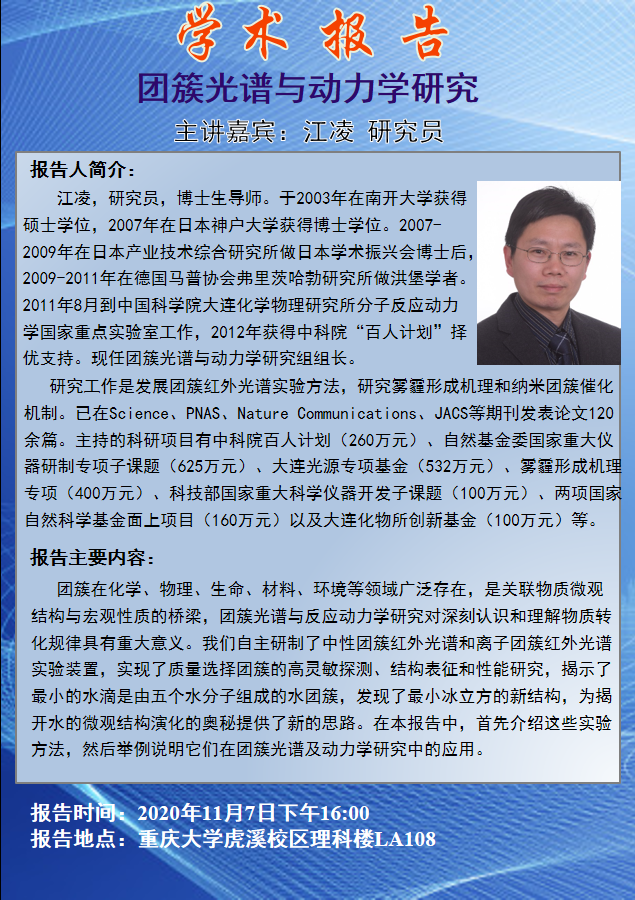 团簇光谱与动力学研究 江凌研究员