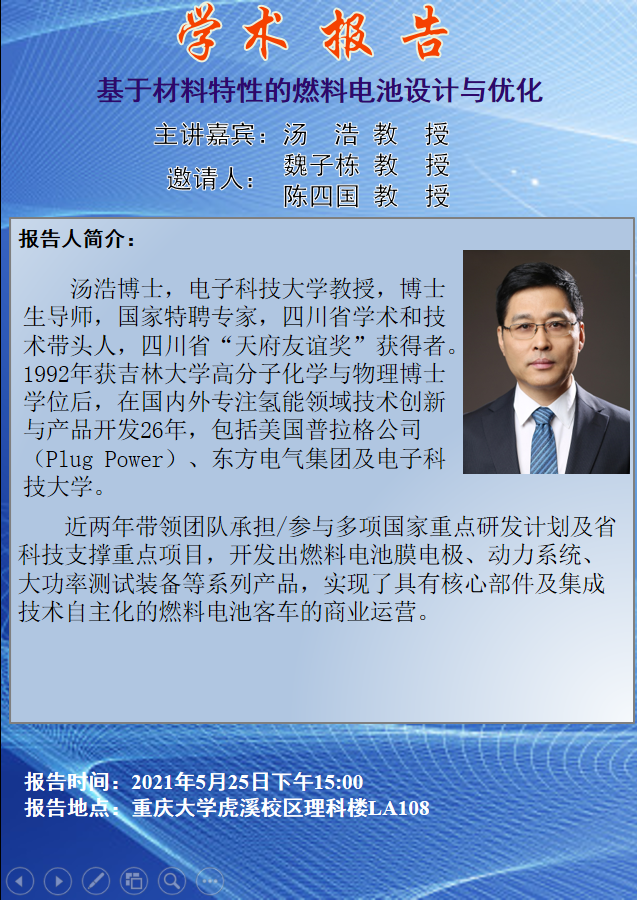 基于材料特性的燃料电池设计与优化 汤浩教授