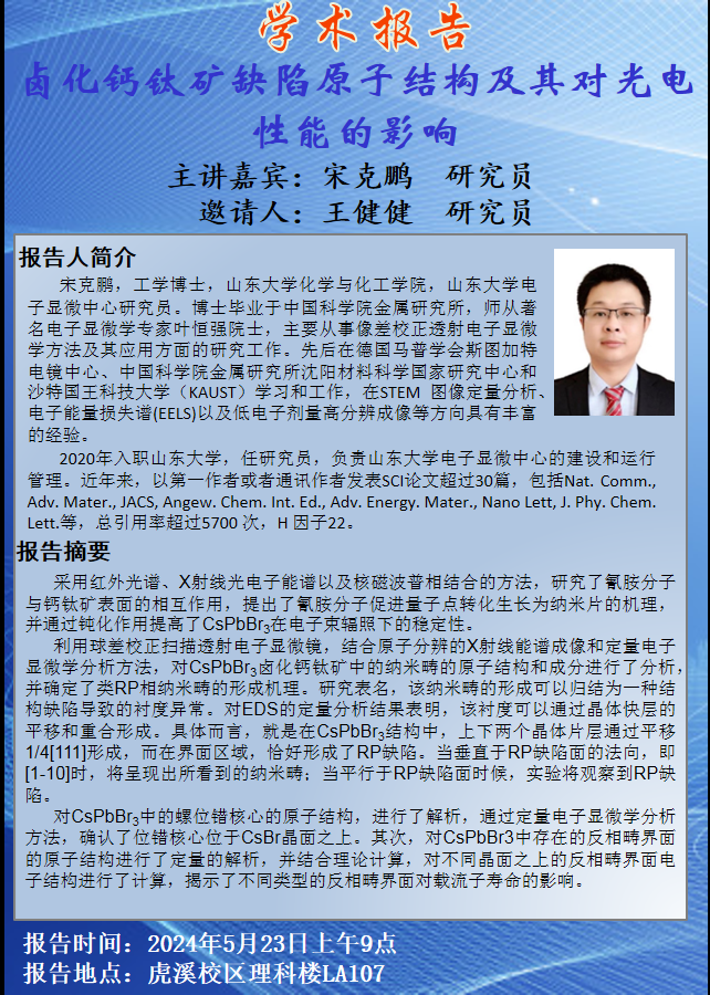卤化钙钛矿缺陷原子结构及其对光电性能的影响