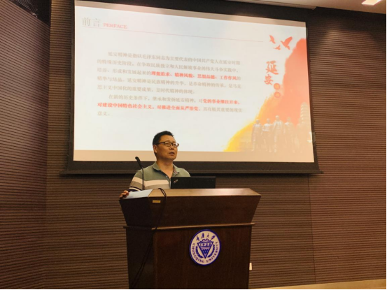 党委书记刘仁龙教授在虎溪校区理科楼LA101为全院师生党员讲授主题为延安精神的党史学习教育专题党课。