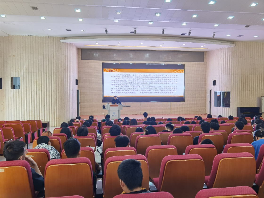 马克思主义学院的刘洪彪教授。刘教授以时间为序,从理论渊源、实践基础、重要意义和丰富内涵等四个方面,全面梳理习近平文化思想,通过摆事实、举例子、做比较,深入浅出地引导学员要树立文化自信。