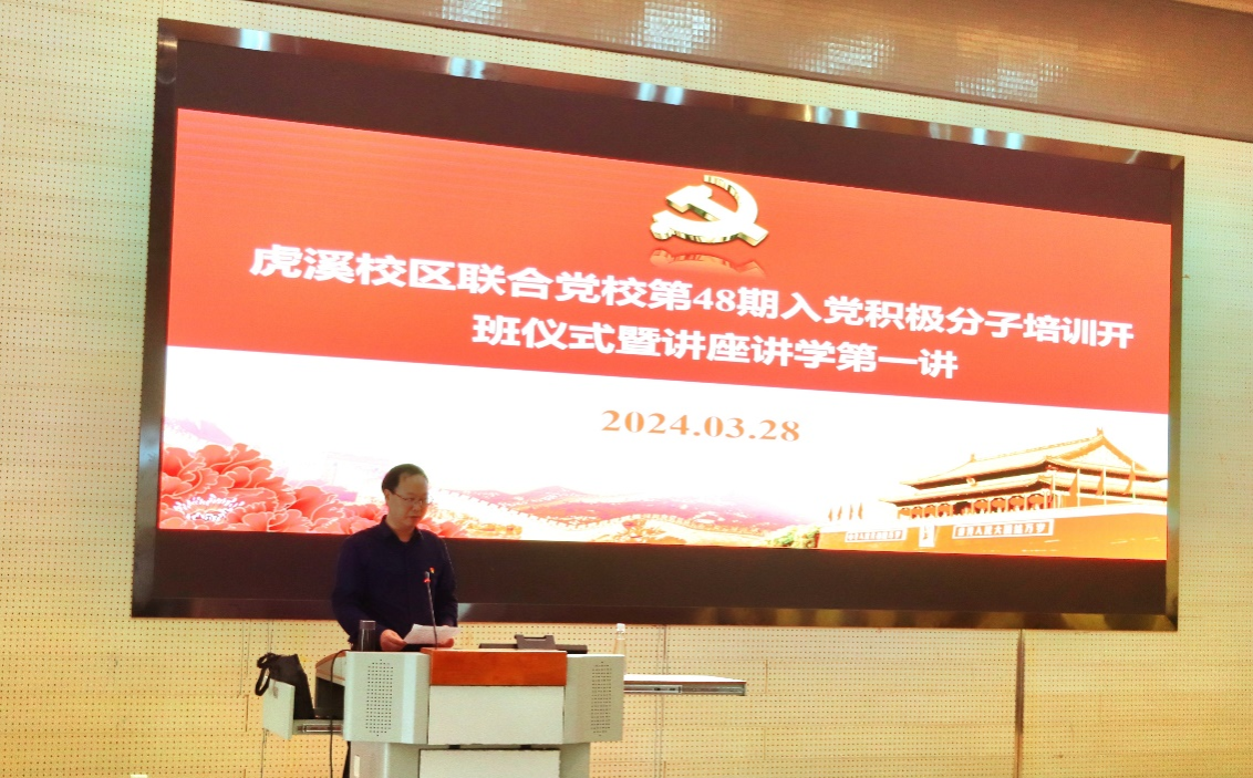 为深入学习贯彻习近平新时代中国特色社会主义思想,全面贯彻落实党的二十大精神,帮助入党积极分子掌握党的理论知识、提高政治理论修养,确保党员发展质量。2024年3月28日,虎溪校区联合党校在综合楼126报告厅举办第48期入党积极分子培训班开班仪式暨讲座讲学第一讲。