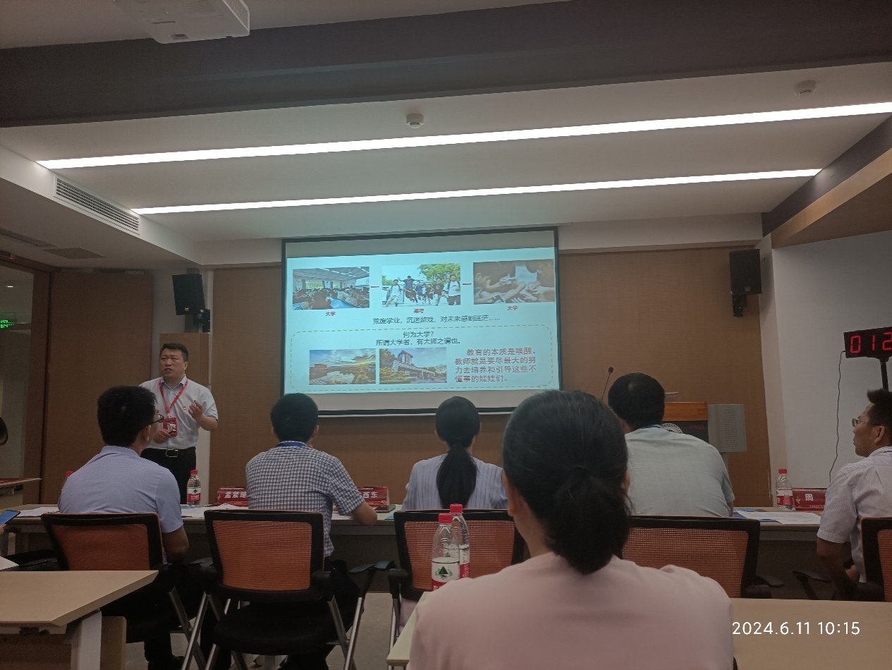 首届党支部书记讲党课能力大赛暨颁奖典礼在管科学院207报告厅举行。党委常务副书记王时龙参加开幕式并致辞。学校12个党政部门负责人担任评委,来自44个二级党组织的组织员、党支部书记和党员代表现场观摩比赛。