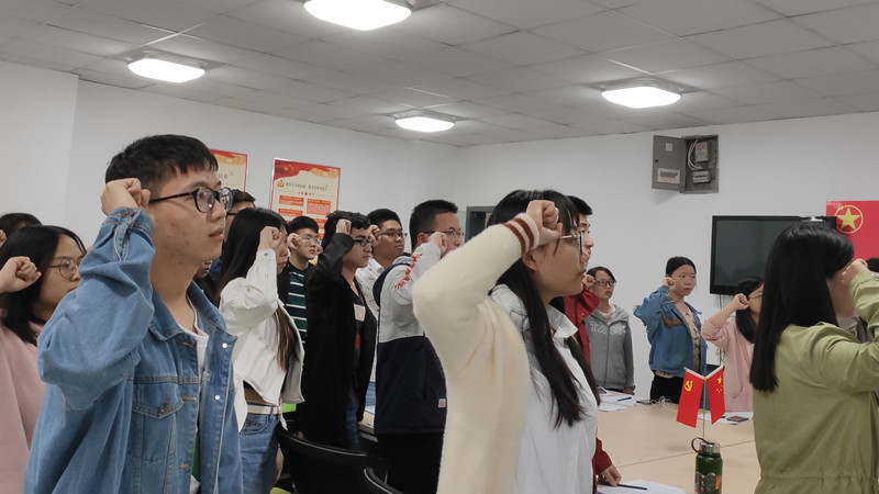 紧接着,支部全体党员同志面对党旗进行庄严宣誓,进一步坚定了加入中国共产党的想法与决心。最后支部书记伍丽同志总结了本次会议,对新加入的预备党员同志表示欢迎,同时也提出了一些要求和愿望,希望同志们能够在今后的生活中,牢记自己的身份,无论在生活中还是在学习上都要以身作则,成为大家的榜样。