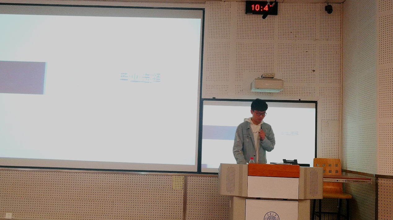 随后,大四优秀毕业生就保研、考研与在座同学们一同交流,分享经验。首先陈森学长与李香兰学姐就保研方向进行了经验分享。学长学姐们鼓励大家积极参加各校组织的夏令营,要勇敢与导师交流并时刻关注保研动向。在择校时,李香兰学姐建议大家能理性看待高校差异,结合自身实际情况选择适合自己的学校。相较于保研,更多的同学会选择考研这条路升学。张勇学长就自身考研经历向学弟学妹们加油打气。考研是一条十分艰辛的道路,需要每个人就自身学习特点制定详细的计划,张勇学长强调在复习阶段意志力十分重要,他希望考研的同学能持之以恒,方能成就自我。