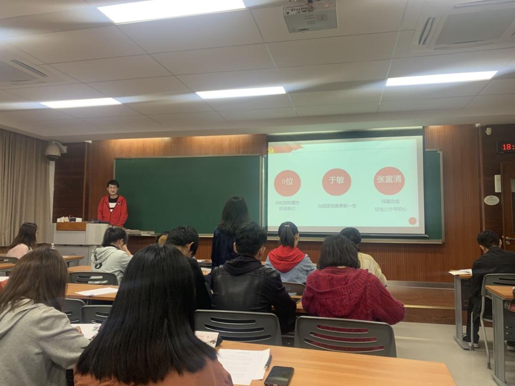 会议伊始,在曹洪滔同志的带领下,与会成员简单学习了习近平总书记在国家勋章和国家荣誉称号颁授仪式上的讲话精神。接着,成员们聆听了各杰出人士的优秀事迹,大家都为之动容。王千雨同志激动地表示,“这些前辈们都有一种强烈的家国情怀,舍小家为大家,这种无私奉献的精神、责任与担当是我们必须认真学习的。”吴迪同志则认为,许多大学生缺乏“吃苦在前,享受在后”精神,学生党员应身先士卒,发扬好先锋模范作用,向优秀前辈们看齐。