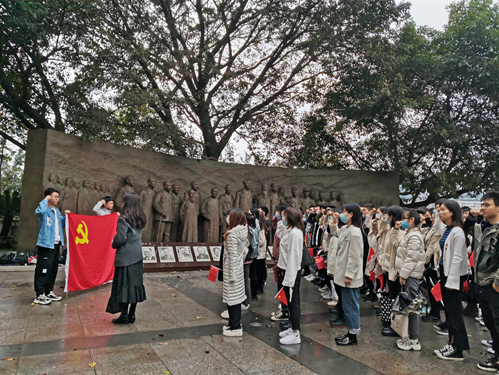 最后,大家齐聚红岩革命纪念广场,面对中国共产党党旗,重温入党誓词,洪亮的誓词声和以爱国、团结、奋斗、奉献为主调的伟大红岩精神一同久久飘荡在这片红色的革命圣土的上空。