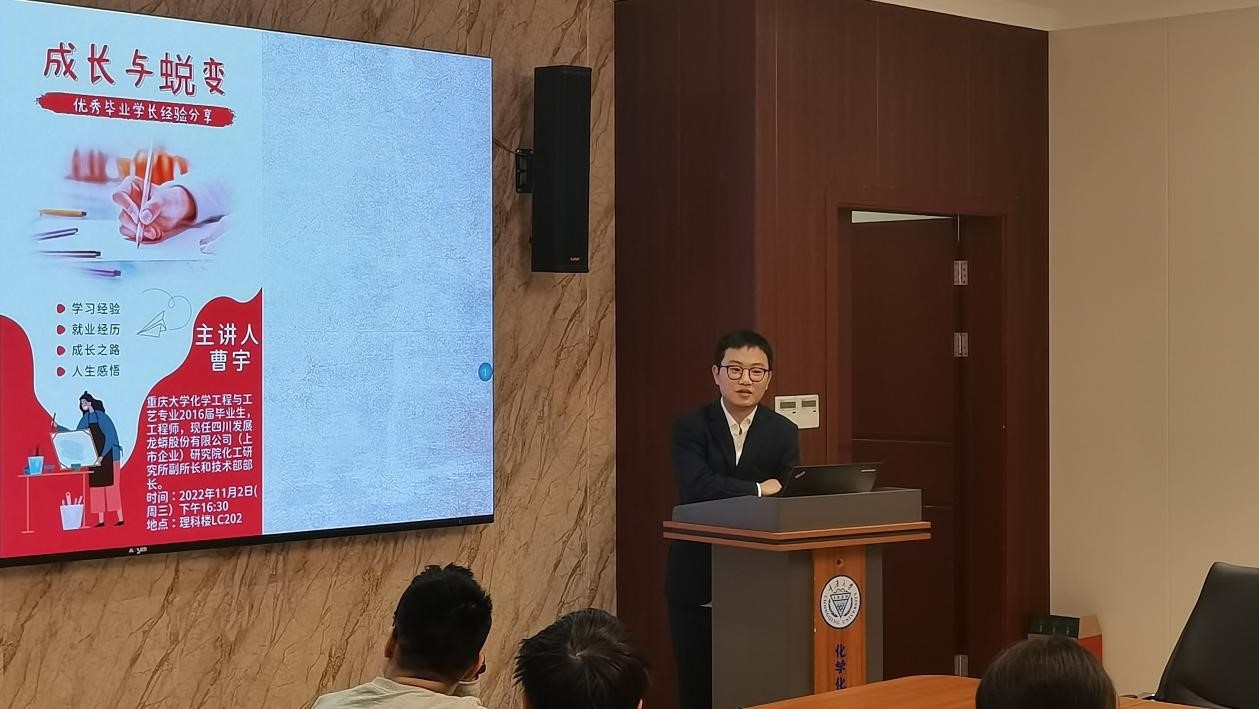化学工程与工艺2016届优秀毕业生曹宇主讲,2020级学生代表出席。