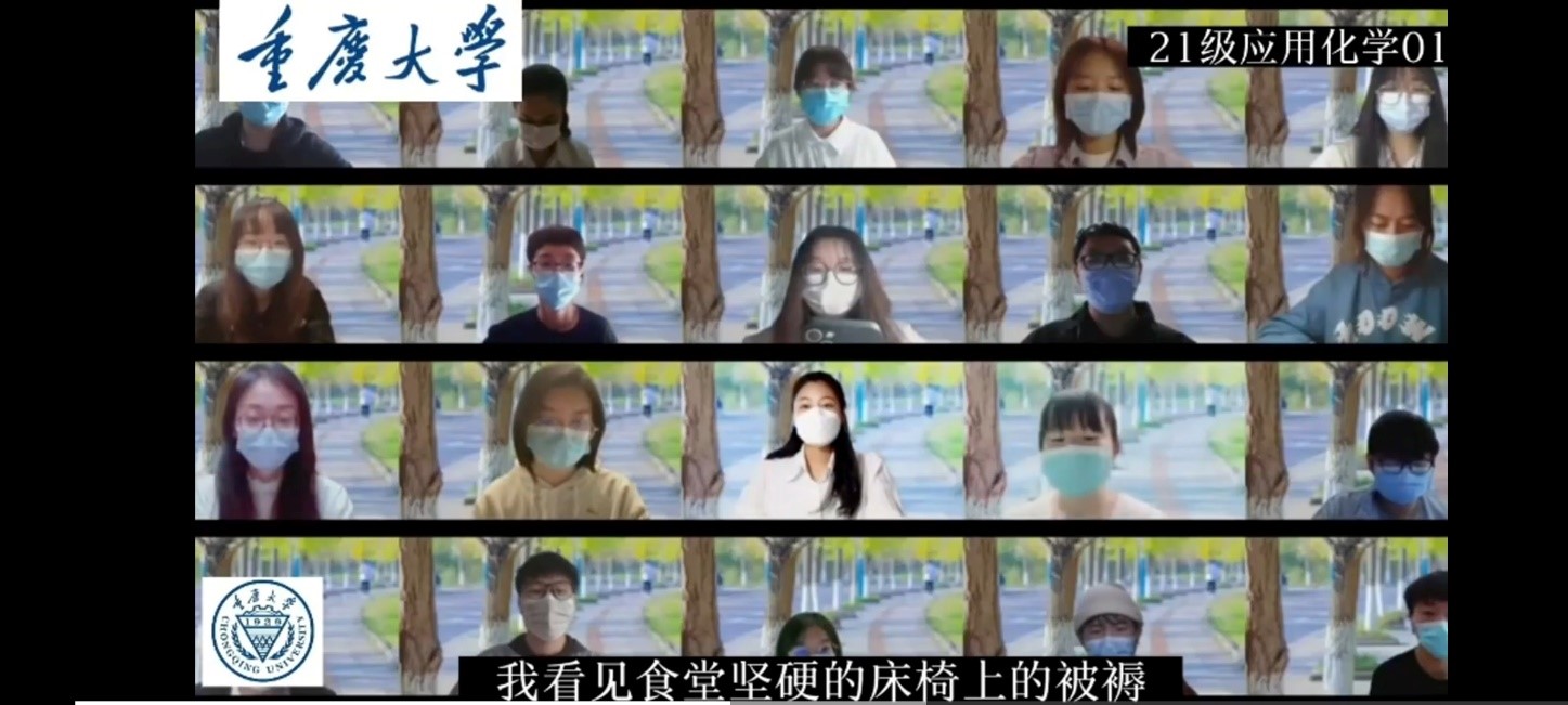 班同学共同参与的,他们将抗疫的生活写入诗中,用慷慨激昂的语气表达了即使严冬来临也无法熄灭的抗疫热情。化学化工个人组的《2021我们记得》,通过回望2021年祖国的拼搏与成就,展现了对未来的期望。药学院团体组的《吾有所爱,其名华夏》,他们借着气势恢宏的背景音乐,将自己对祖国的热爱之情抒发出来。药学院个人《月光下的中国》,以祖国的夜景为背景板,将自己对于祖国的赞美之情缓缓道出。