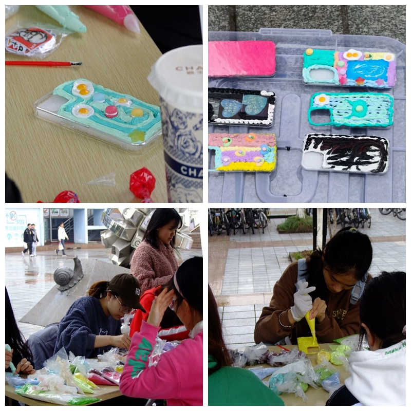 第二,DIY手机壳活动,用自己的想象创作属于自己的独一无二的手机壳。透明奶油胶、小挂件、手套等物品一应俱全,参与活动人数络绎不绝,这是亲手送给自己的一份妇女节礼物。