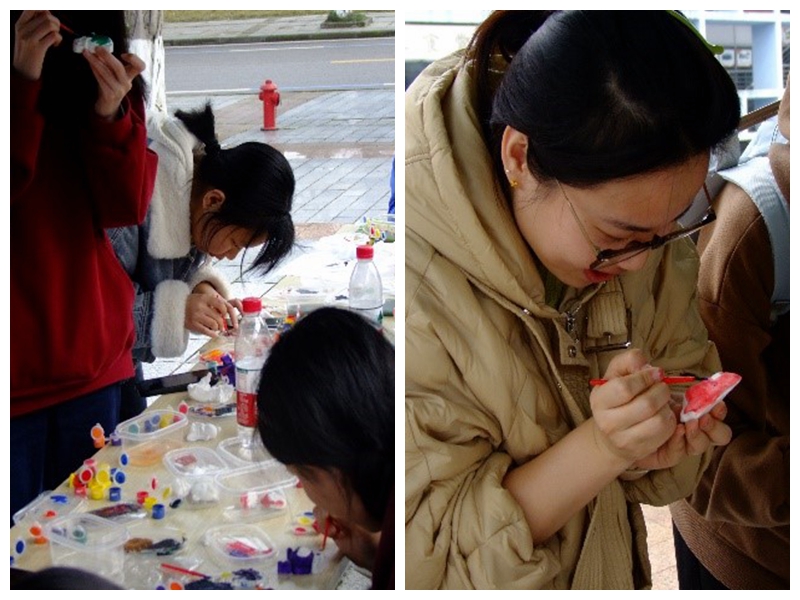 最后,石膏涂色,增添乐趣,为自己的人生添一抹亮色。我们准备了石膏娃娃,大家涂色的热情只增不减,天马行空的为娃娃上色,欢乐多多。