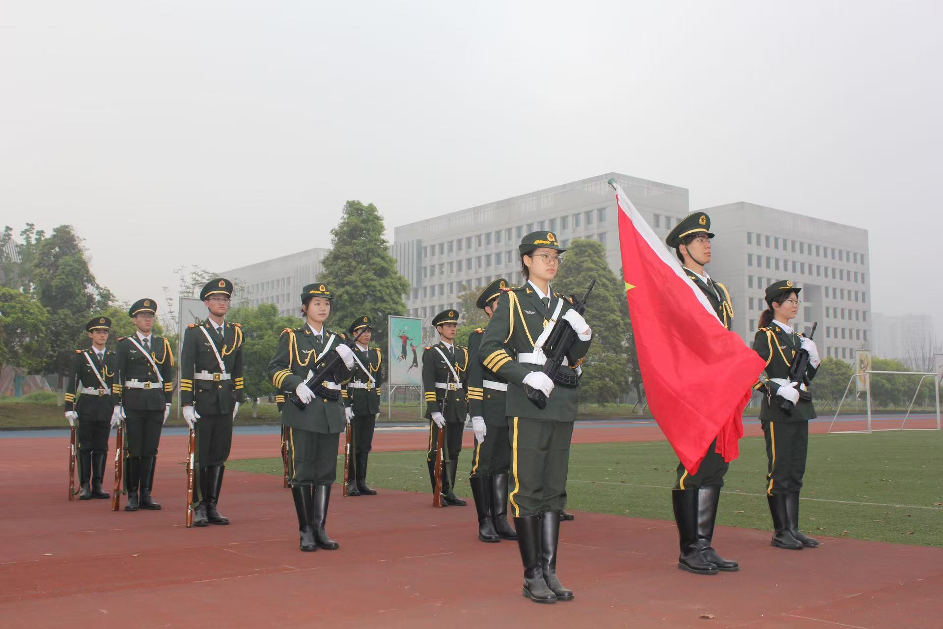 2025年4月7日早上7点30分,足球博彩 在虎溪校区运动场国旗处举行升旗仪式,本科2023和2024级全体同学参与。