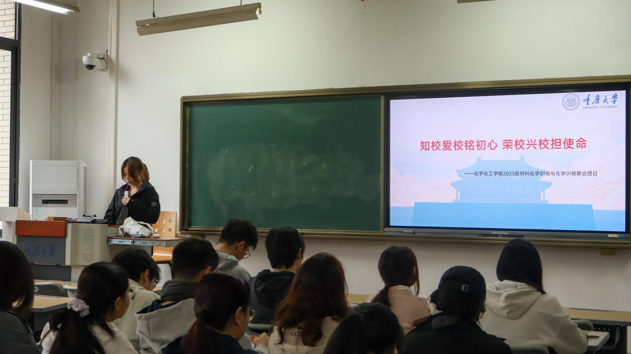 材料化学2023级01班团支部与化学2023级01班团支部在虎溪校区D1108教室联合举办了以“知校爱校铭初心 荣校兴校担使命”为主题的团日活动。