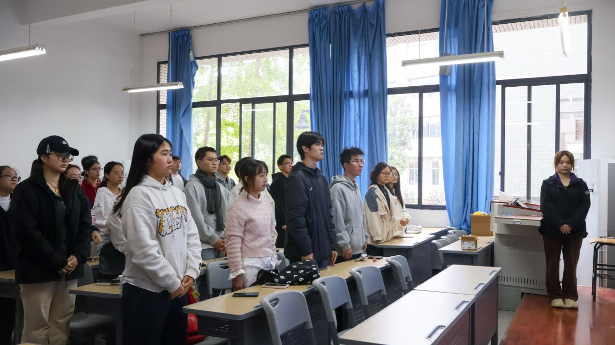 最后,全体同学齐唱校歌,在激昂的旋律中进一步加深了对学校文化与精神的理解。化学01班团支部书记对本章内容进行了总结,并发出“荣校兴校,从我做起”的倡议,鼓励大家将爱校情怀融入日常学习、科研与社会实践,切实担当起建设学校的青春使命。