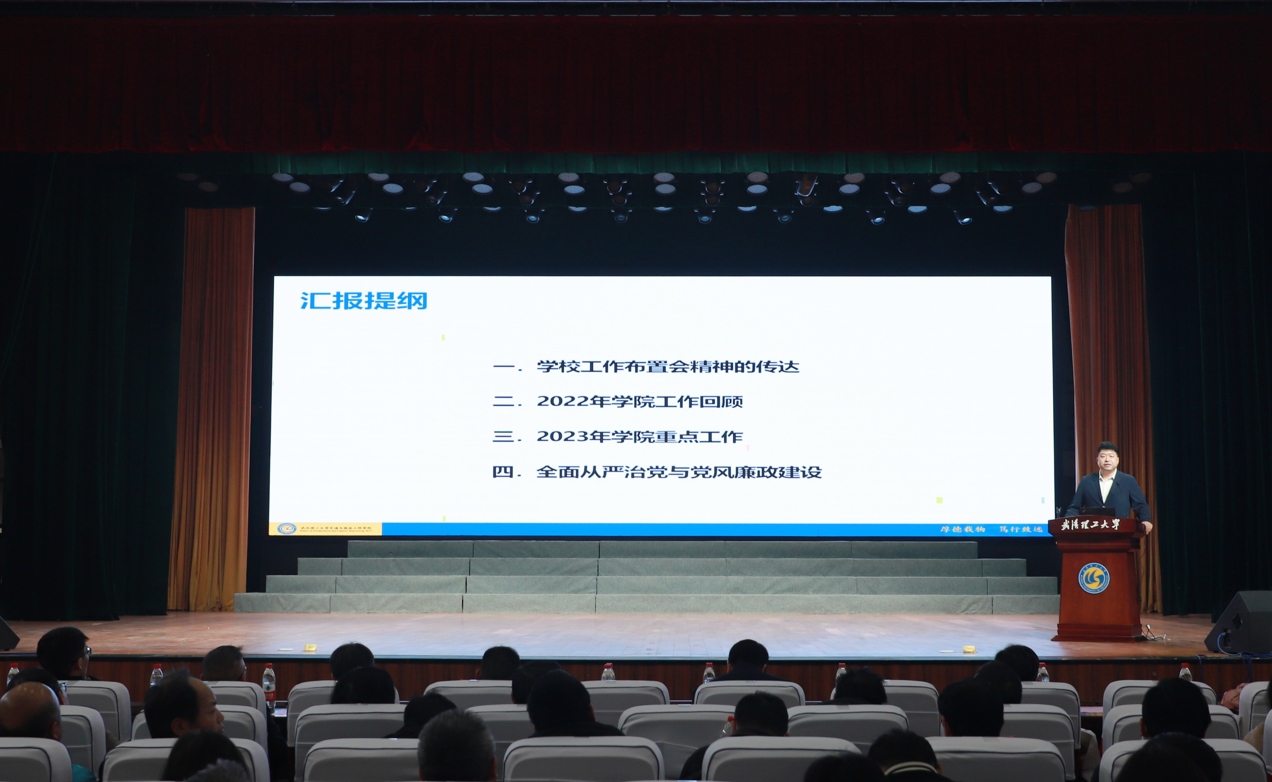 3月2日,足球博彩 在余区大礼堂召开全院教职工大会,传达学习学校2023年工作布置会会议精神,总结足球博彩 2022年工作,部署足球博彩 2023年重点工作。会议由足球博彩 党委书记肖耀根主持,全院教职工参加。